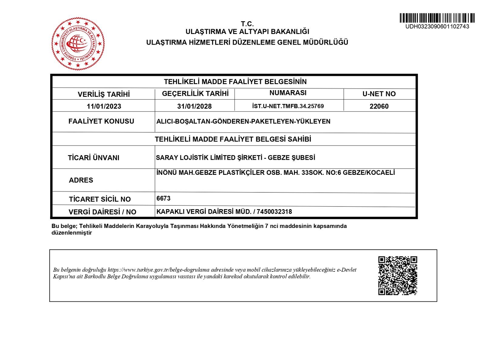 TEHLİKELİ MADDE FAALİYET BELGESİ